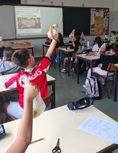 Em simultâneo, as restantes turmas da escola exploraram um PowerPoint educativo sobre alimentação saudável, refletindo sobre escolhas alimentares equilibradas e os benefícios de uma dieta variada e rica em nutrientes.