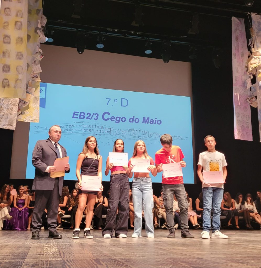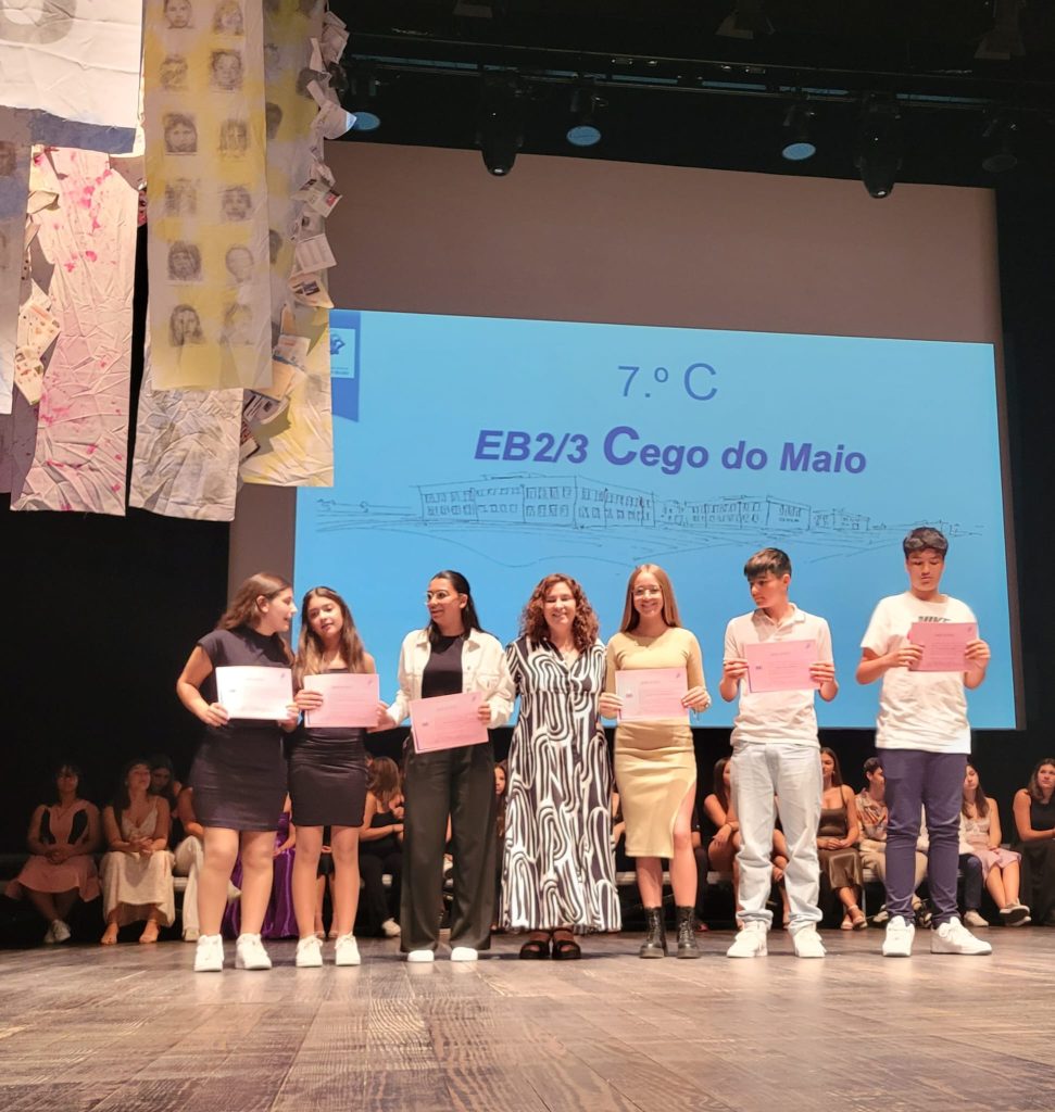 Prémio Cego do Maio – Fátima Ferreira de Araújo, do 9.º F e Luana Rodrigues da Silva, do 9.º B, distinguidas ao nível de atitudes/valores e ações durante o seu percurso no Agrupamento