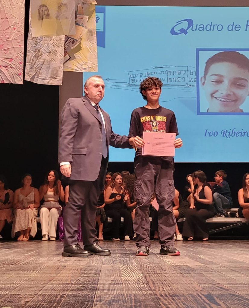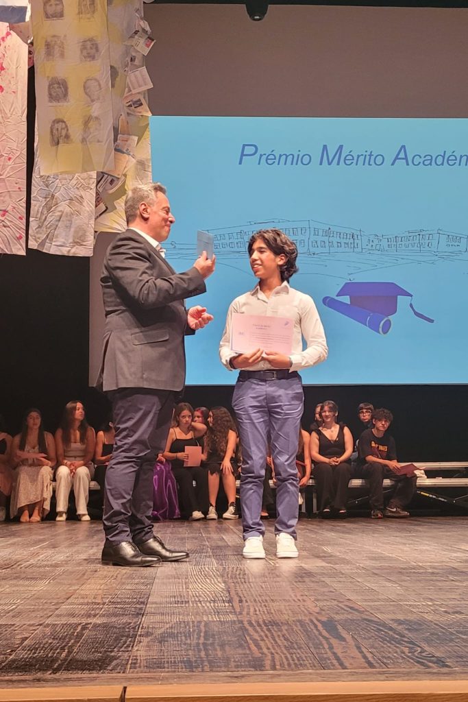 Prémio de Mérito Académico – Tomás Matias da Silva Carvalheiro Ferreira, do 9.ºE distinguido como o melhor aluno do 9.º ano a nível de classificações obtidas e postura.