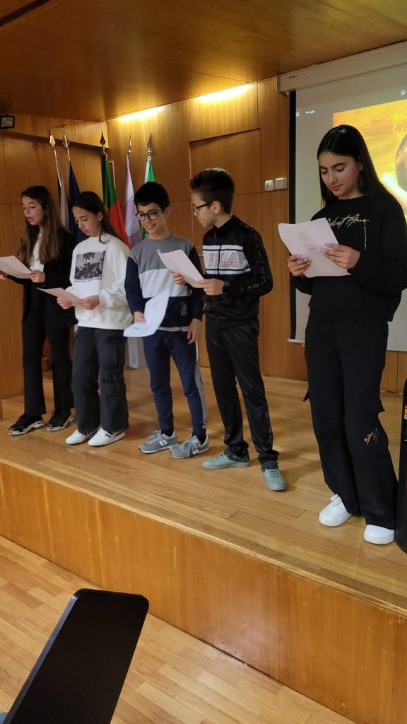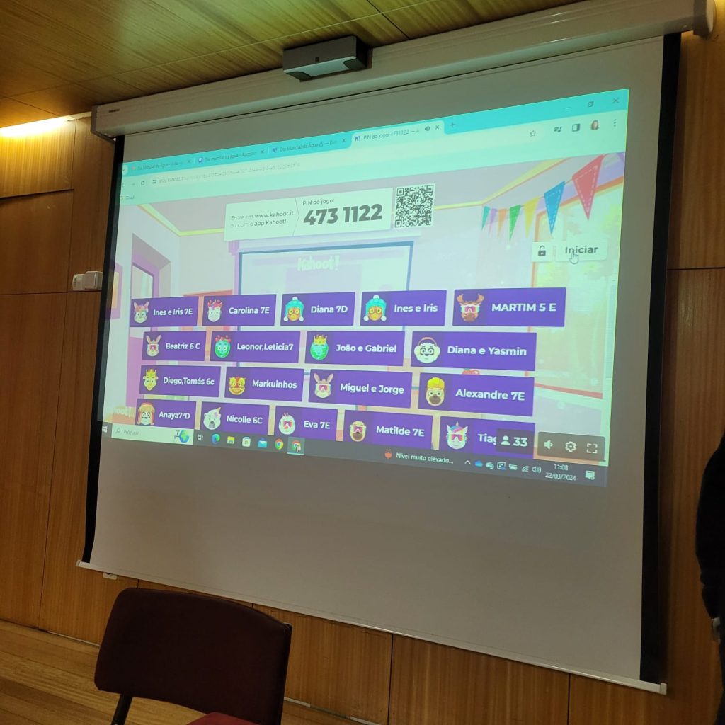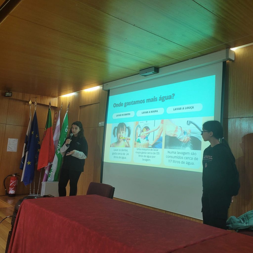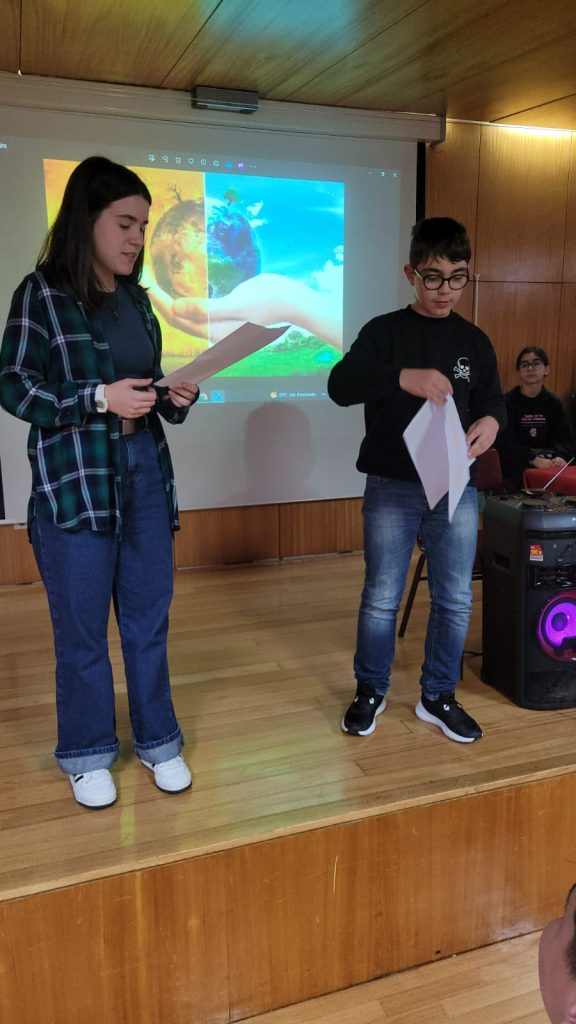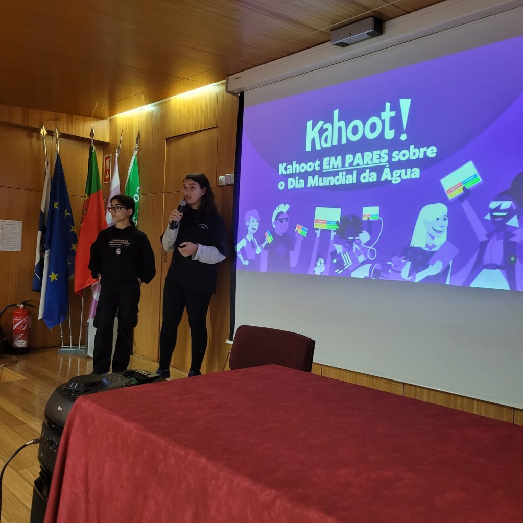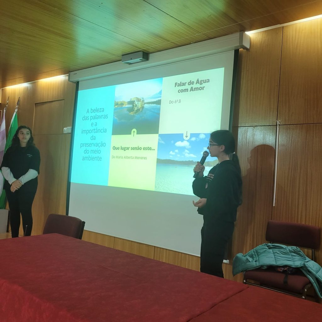 Os alunos do Eco-Clube e do Clube de Teatro desenvolveram, no dia 22 de março, uma atividade com o intuito de alertar os participantes para a importância deste recurso vital e sensibilizar para a mudança na forma como utilizam, consomem e gerem a água. Desde dicas para reduzir o consumo de água em casa, viajando pelo mundo da poesia com a declamação do poema “Que lugar senão este…” de Maria Alberta Menéres, “Falar de água com amor” – trabalho desenvolvido pelo 5.ºB (22-23), jogando um Kahoot relacionado com o tema e, por fim, cantando a música de Paulo Gonzo “Espelho de Água”. Uma mistura de várias áreas transmitindo a mesma mensagem: A ÁGUA É UM BEM PRECIOSO PARA TODOS! VAMOS PRESERVAR!