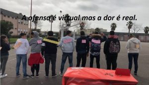 No dia 27 de Fevereiro, inserido no 2.º momento de paragem do Projeto+, realizaram-se atividades dinamizadas pelas turmas do 7.º A e 7.º D, com a orientação e o apoio das respetivas diretoras de turma, Paula Miranda e Ana Filipe. Uma parte do trabalho realizado em Projeto+ pelas turmas referidas resultou nas atividades apresentadas neste dia e podemos dizer que as frases expostas pela escola chamaram a atenção, o Mural “Cego do Maio contra o Cyberbullying” foi um sucesso e o Peddy Paper, no qual participaram 12 equipas de 5.º ano, foi muito animado. Obrigado aos alunos que colaboraram.