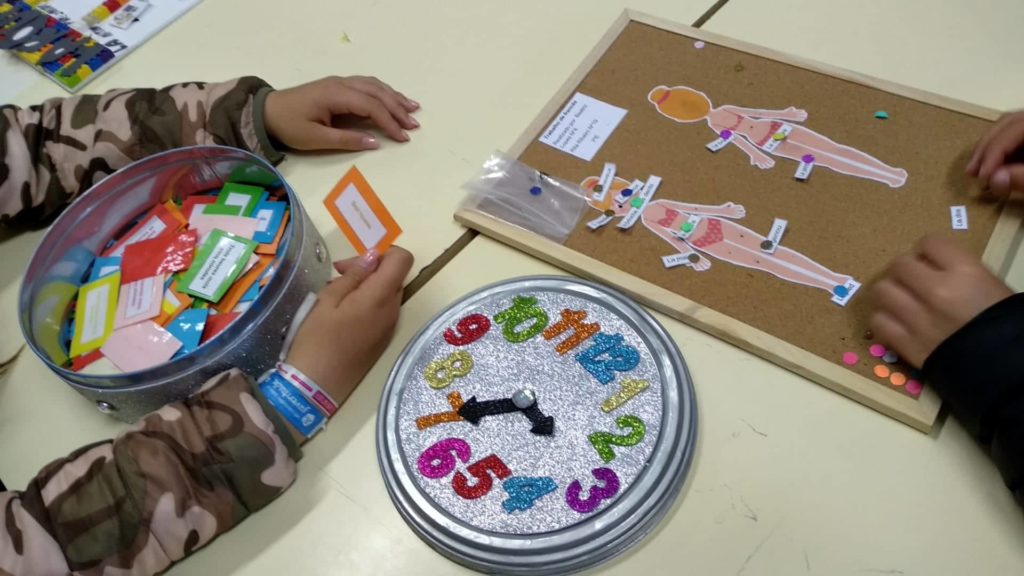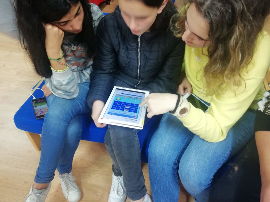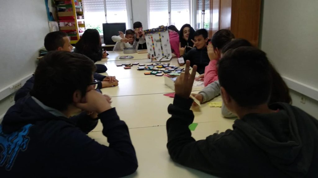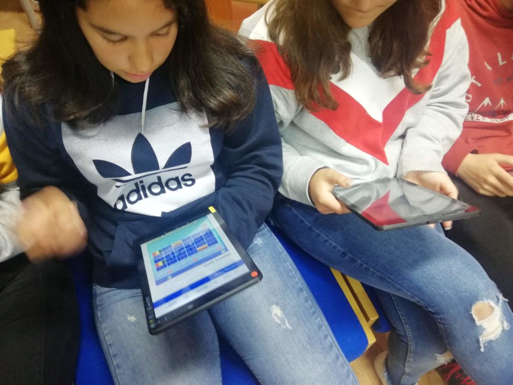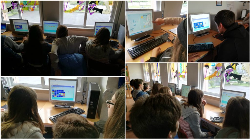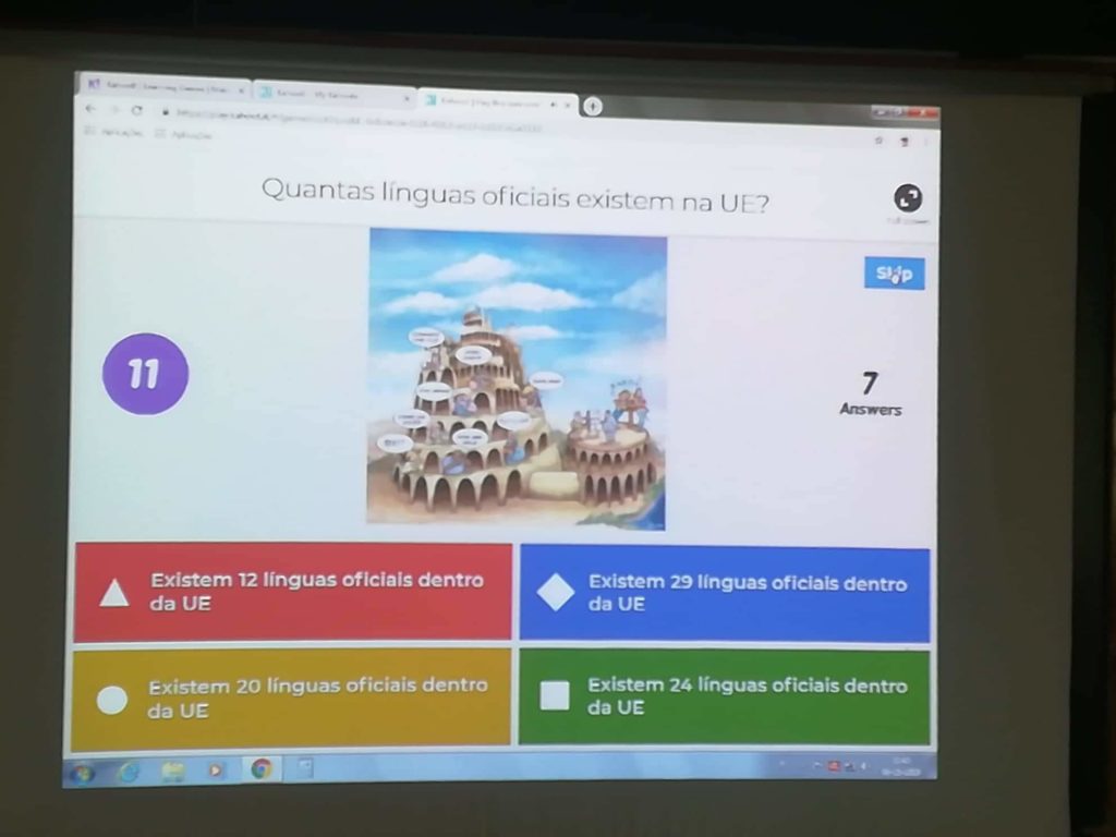 Na sala de informática, as atividades estiveram a cargo da professora Beatriz Moreira, tendo os alunos elaborado bandeiras da Europa e realizado jogos interativos através das ferramentas digitais Kahoot e Mentimeter. Estiveram presentes nesta sala alunos das turmas do 8º e 9º anos e alguns alunos do 6ºE que, orientados pelos seus colegas do 9ºD, puderam experimentar as novas ferramentas digitais, aprofundando os seus conhecimentos sobre a Europa e a cultura e civilização francesas, em particular. Em simultâneo, estes alunos foram sensibilizados para a aprendizagem da língua francesa no próximo ano letivo.