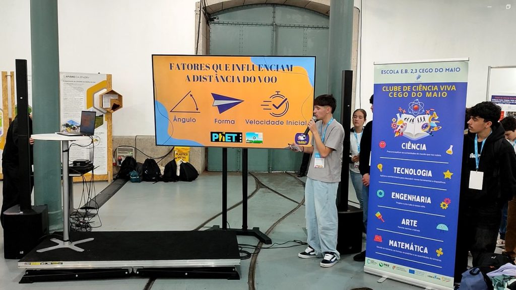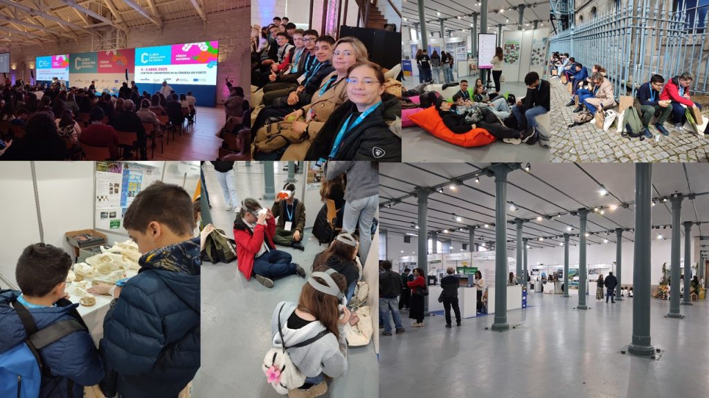 A aventura começou bem cedo, na estação de metro da Póvoa de Varzim 🚇. Seguimos até ao Porto e, acompanhados pela chuva ☔, caminhámos até ao Centro de Congressos da Alfândega do Porto. Após o check-in, colocámos o nosso poster no expositor atribuído e assistimos à sessão de abertura, onde marcaram presença várias entidades oficiais, incluindo o Ministro da Educação. 🏛️