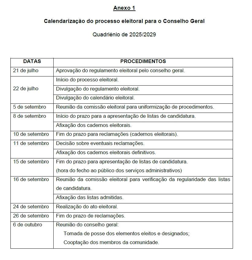 REGULAMENTO e CALENDARIZAÇÃO Processo eleitoral para o Conselho Geral (22-07-2025)