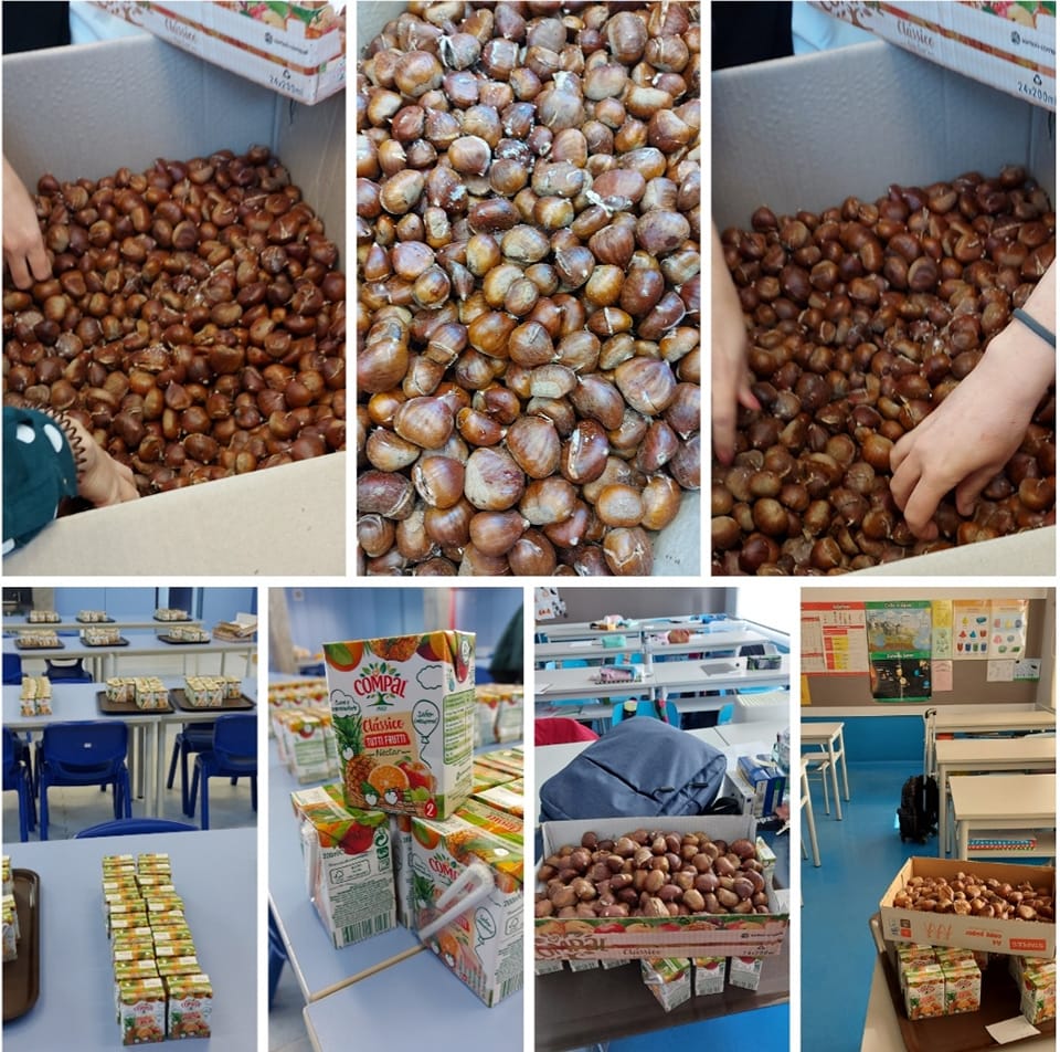 Castanhas oferecidas pela junta de freguesia (Póvoa de Varzim, Beiriz e Argivai)! Castanhas assadas no Café Padaria Sra. de Belém! Sumos comprados pela Associação de Pais Giesteira! Atividade dinamizada pelas docentes e não docentes com ajuda da APaisGiesteira.