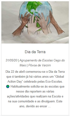 Também na página do Global Action Day encontra-se a referência ao Agrupamento de Escolas Cego do Maio nesta iniciativa desenvolvida no âmbito do Programa Eco-Escolas e divulgada pelos professores coordenadores, com articulação aos Objetivos de Desenvolvimento Sustentável.