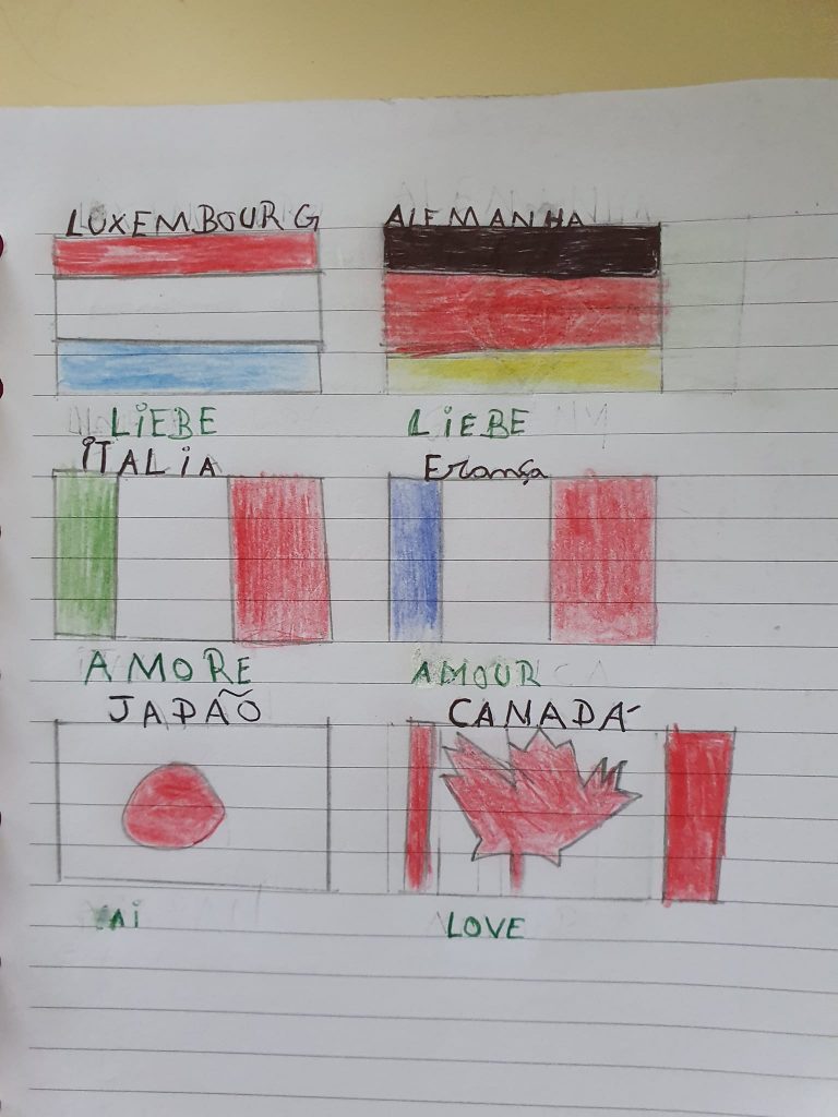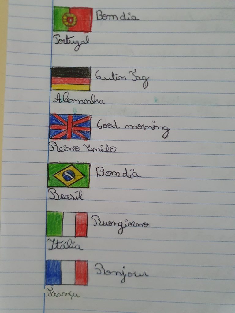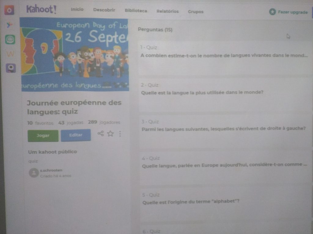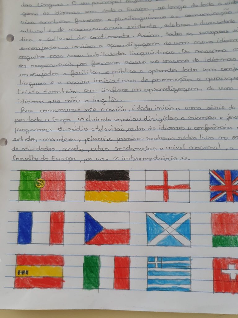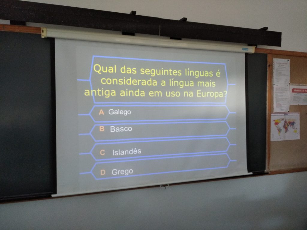 Nas aulas de Inglês, os alunos prepararam infográficos digitais sobre particularidades interessantes e curiosas de diferentes línguas europeias, especialmente referentes aos países com quem desenvolvemos projetos internacionais como o Erasmus+ e o eTwinning. Estes trabalhos foram realizados em trabalho de grupo colaborativo usando a ferramenta digital Canva. Em sala de aula foi realizado um Kahoot com questões relacionadas com a diversidade linguística.