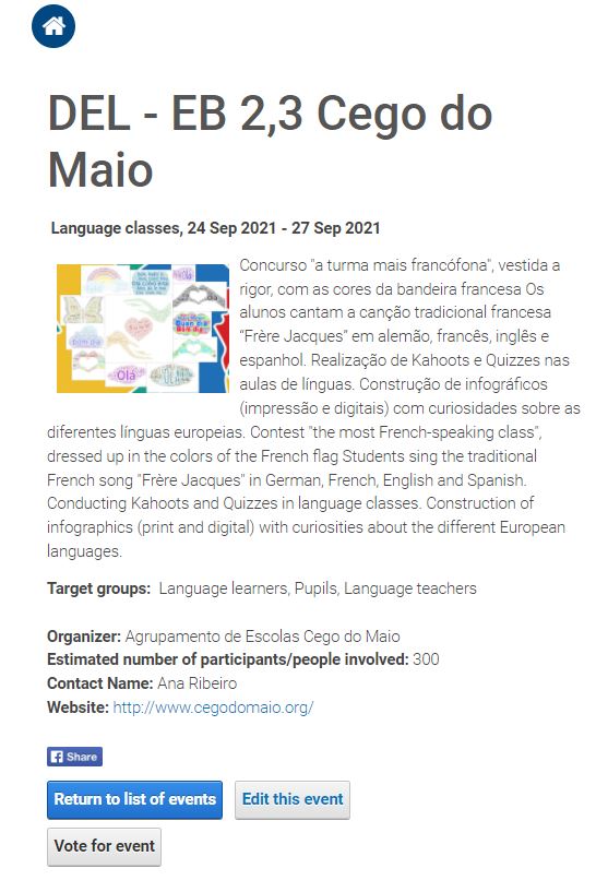 No passado dia 26 de setembro celebrou-se o Dia Europeu das Línguas e como já vem sendo habitual, a EB 2,3 Cego do Maio assinalou esta comemoração nas aulas das áreas disciplinares do Departamento de Línguas.