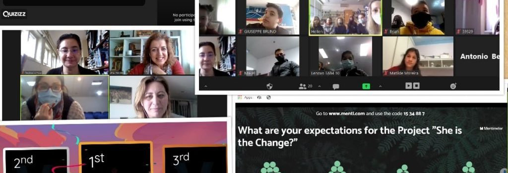 Na passada quinta-feira, dia 4 de março, reuniram-se via Zoom, alunos e professores dos quatro países parceiros do projeto Erasmus+/eTwinning “SHE’S the Change”. Os alunos da escola IES San Marcos, Tenerife (ilhas Canárias) , Espanha e de 4th High School of Volos, Grécia, juntaram-se à conferência a partir da escola, enquanto os alunos italianos do … Continue a ler Encontro Erasmus+ com alunos: videoconferência