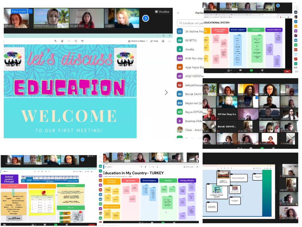 No âmbito do Projeto eTwinning “Discuss This!”, alunos da turma E do 8.º ano, a Íris, o César, o Igor e o Diogo Moita, participaram hoje, sábado, numa videoconferência para conhecer os parceiros da Turquia, Lituânia, Itália, Polónia e Espanha e apresentar as conclusões relativamente ao 1.º tema em discussão – A Educação.