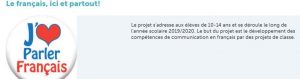 Este projeto, também dinamizado na nossa escola pela professora Beatriz Moreira, tem como objetivo desenvolver competências de comunicação em francês através de projetos de turma. Participam no projeto alunos do 7.ºC, e do 5.ºF e 6.º F, que frequentam o Clube de Línguas.