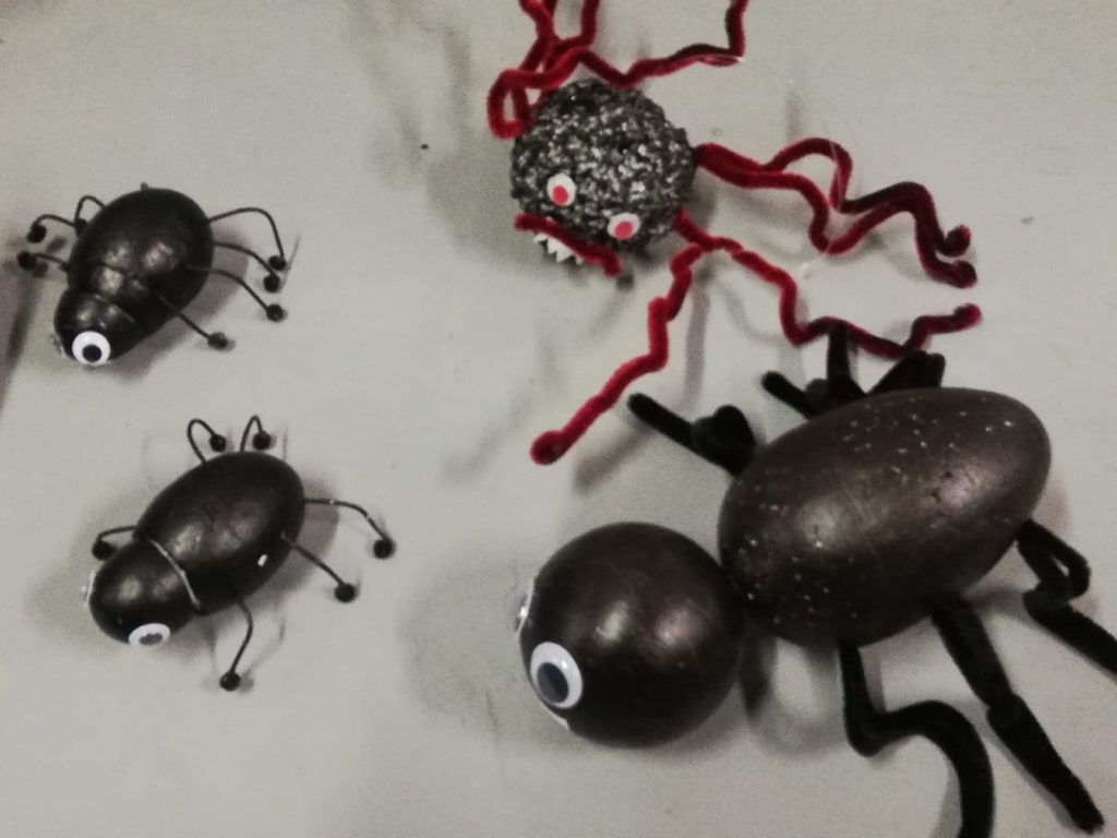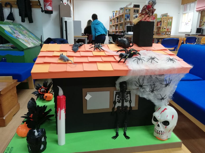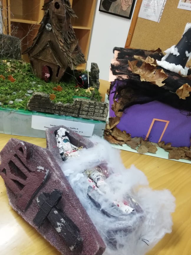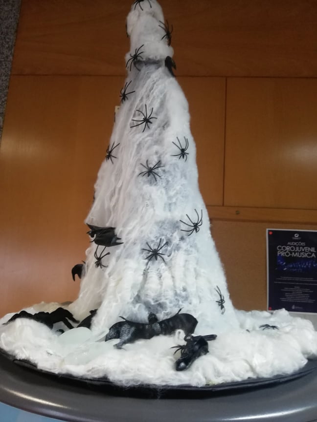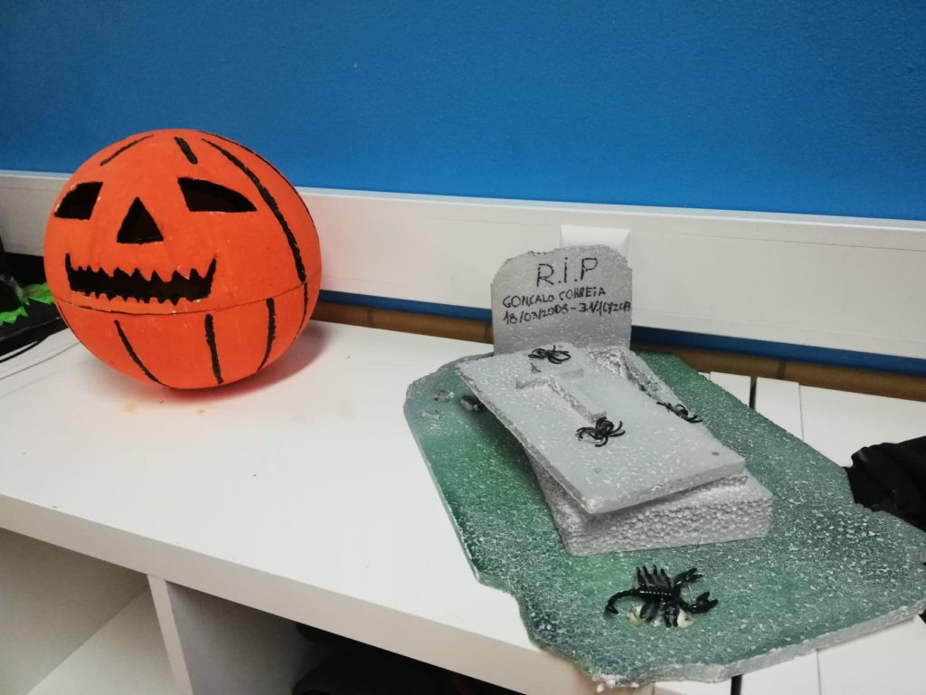 Ao longo da semana, os alunos decoraram a sala dos alunos, a biblioteca e outros espaços com trabalhos alusivos à comemoração: bruxas, esqueletos, múmias, chapéus, abóboras, animais horripilantes e casas assombradas invadiram a escola.