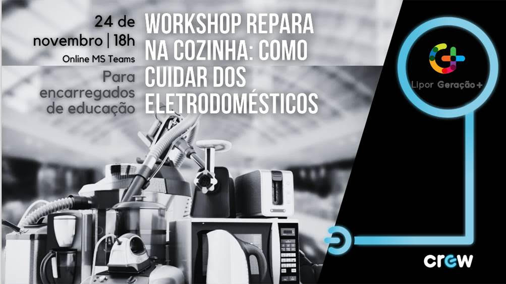 É tempo de envolver as Famílias numa das problemáticas da atualidade: a PRODUÇÃO excessiva de RESÍDUOS DOS EQUIPAMENTOS ELÉTRICOS E ELETRÓNICOS (REEE’s), neste sentido a Equipa GERAÇÃO+ vai promover um WORKSHOP, dia 24 de novembro, com um TÉCNICO ESPECIALIZADO que irá dar dicas úteis e práticas para prolongar o tempo de vida destes equipamentos.