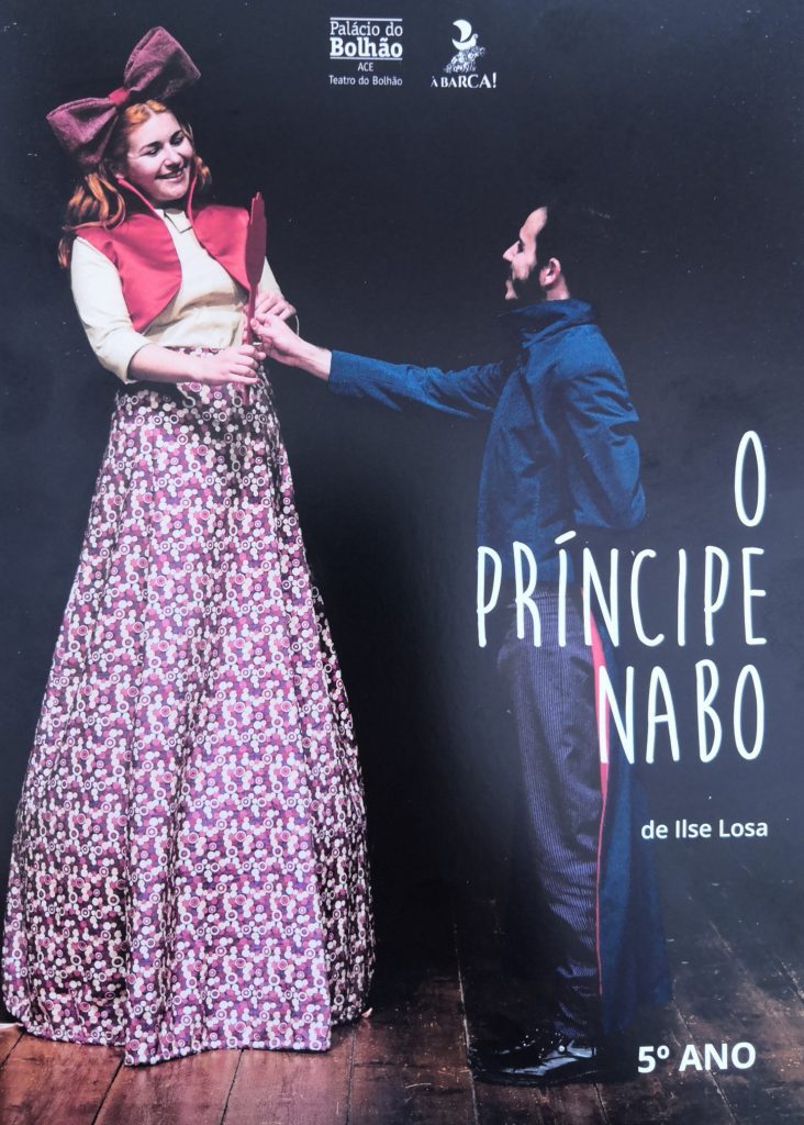 Assistiram à peça de teatro todos os alunos do 5.º ano. “O Príncipe Nabo” é uma obra de Ilsa Losa e integra o programa da disciplina de Português do 5.º ano que será trabalhado nas aulas do 5.º ano neste ano letivo.