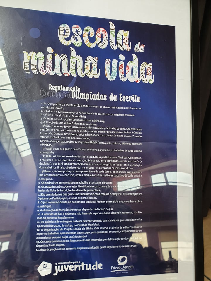 As Olimpíadas da Escrita realizaram-se na tarde de sexta-feira, 18 de fevereiro, no Diana Bar. De entre os 156 alunos das escolas básicas e secundárias do concelho da Póvoa de Varzim inscritos nesta iniciativa, participaram 20 alunos do nosso Agrupamento.