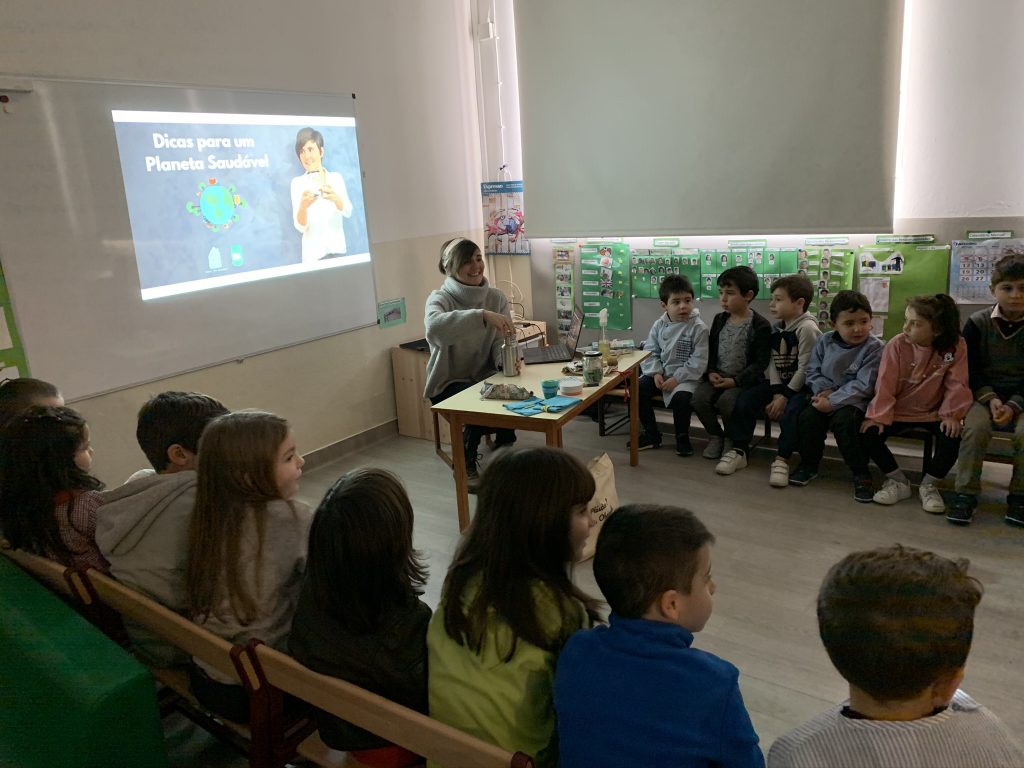 Para dar seguimento aos projetos em curso, “Planeta Saudável” dos alunos da educação pré-escolar do JI Pedreira 1, e “Do lixo à arte” dos alunos do 1º ano da EB1/JI Argivai, convidamos a socióloga, ambientalista, fundadora e embaixadora do “Movimento Lixo Zero Portugal”, Ana Milhazes, para conversar com os alunos sobre “Dicas para um planeta saudável”. Foi um privilégio ouvir o que a Ana partilhou sobre a poluição dos oceanos e o que acontece aos animais quando comem o plástico. Ficamos muito preocupados com os dados apresentados sobre o lixo que produzimos.