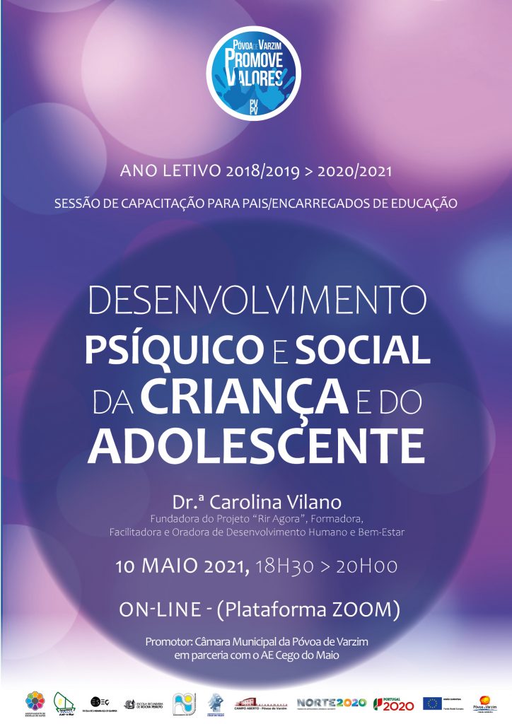No âmbito do Projeto “PVPV – Póvoa de Varzim Promove Valores” e da Ação 1 – “Elos Pais” nele inscrita, o Município da Póvoa de Varzim, em parceria com o Agrupamento de Escolas Cego do Maio, vai promover uma capacitação para pais/encarregados de educação, no dia 10 de maio, alusiva ao tema “Desenvolvimento Psíquico e Social da Criança e do Adolescente“, tendo por objetivos fomentar um maior compromisso no envolvimento da família no processo educativo dos seus filhos, assim como capacitar as famílias para a adoção de estratégias exequíveis de parentalidade consciente, positiva e comprometida.