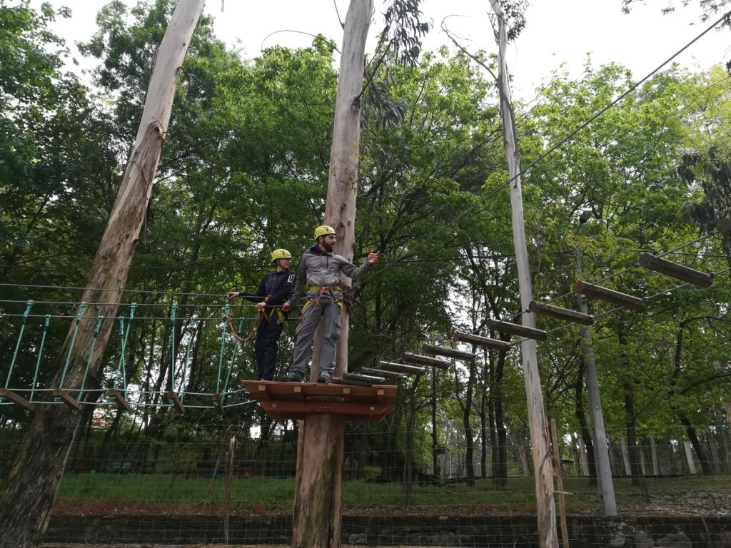 Pós almoço partilhado, deu-se de novo a separação dos grupos. Os que ficaram no Parque tiveram a oportunidade de enfrentar barreiras, superar dificuldades e serem solidários com os mais vulneráveis. Tiveram a oportunidade de experimentar diversas atividades, tais como: Arborismo; Escalada; Percurso Aventura Terrestre e Tiro ao Alvo. Para terminar em beleza, o lanche foi feito com a broa que os próprios tinham assistido à sua feitura.
